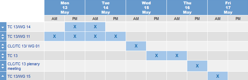 Az egy héten keresztül tartó eseményen az IEC-bizottság munkacsoportjai üléseztek, a plenáris ülésre május 15-én és 16-án került sor. A munkacsoporti üléseken a folyamatban levő szabványkidolgozásokat tekintették át, és ezekkel kapcsolatban hoztak döntéseket. A plenáris ülésen meghallgatták a vezetőség és a munkacsoportok vezetői beszámolóit, megvitatták, majd elfogadták azoknak a szabványoknak a listáját, amelyeket felül kell vizsgálni. Közben a CLC/TC 13, az IEC/TC 13 európai tükörbizottsága is ülésezett, kihasználva, hogy a két szervezet tagsága nagyrészt átfedi egymást.