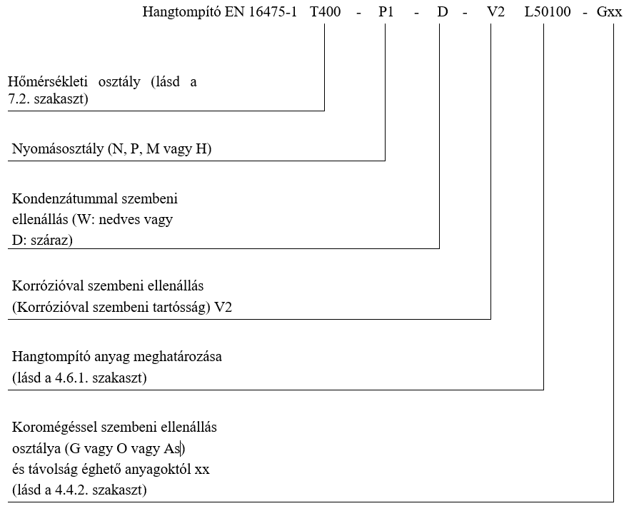 Példa az EN 16475-1:2020 szerinti hangtompítók megjelölési rendszerére: