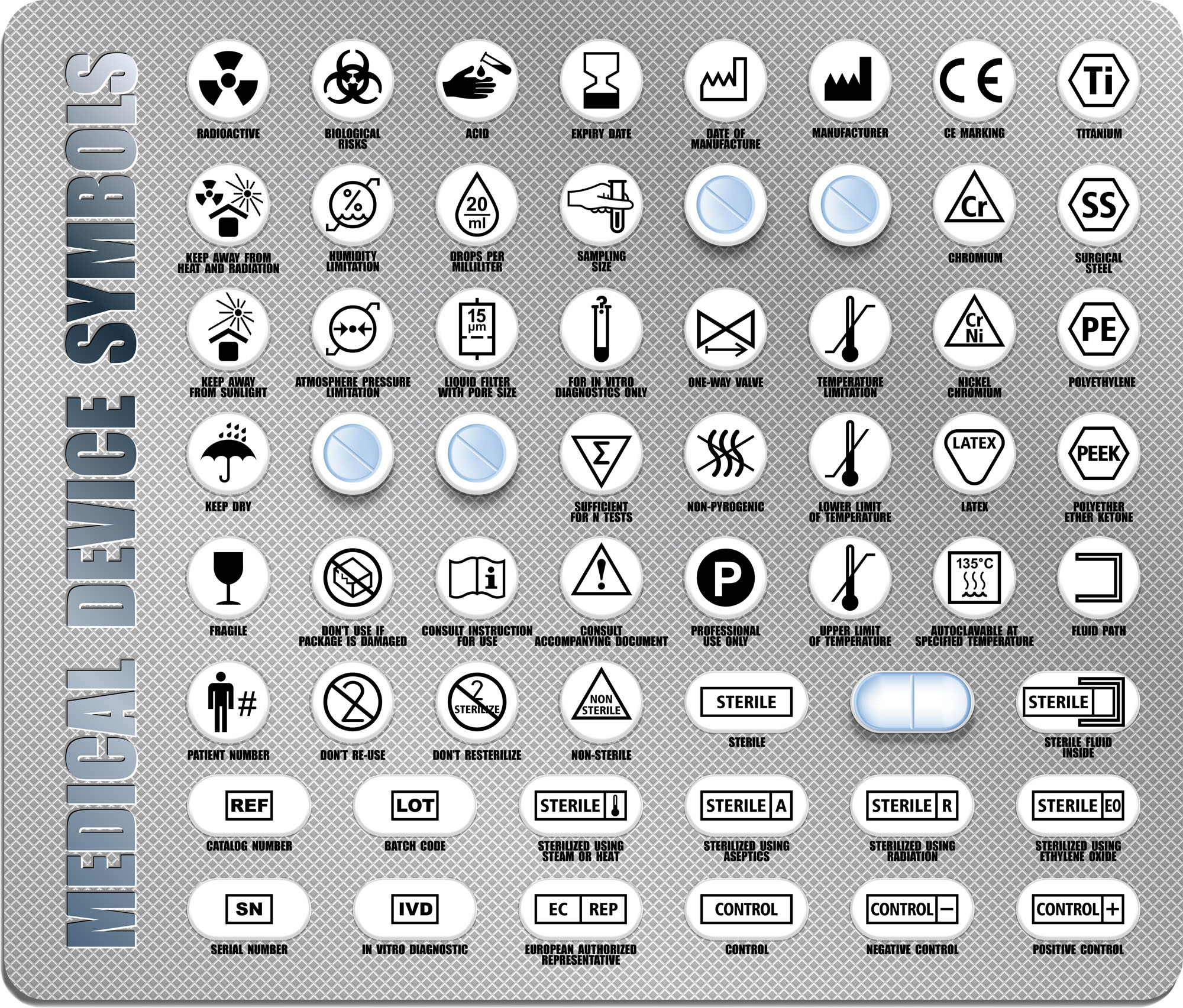 Az orvostechnikai eszközökön megadandó tájékoztatást az ellátási lánc bármely nyelven beszélő résztvevője számára érthetően kell feltüntetni. Ebből kifolyólag számos nemzetközileg elfogadott grafikus szimbólum van használatban, melyek szabványát az ISO nemrég vizsgálta felül.