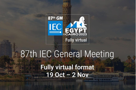 A Nemzetközi Elektrotechnikai Bizottság (IEC) 87. közgyűlését 2023. október 19. és november 2. között tartották kizárólag virtuális formában. Az eseménynek eredetileg Egyiptom adott volna otthont, azonban a szomszédjukban zajló konfliktus miatt, a résztvevők biztonsága érdekében, a házigazda lemondott a személyes találkozás lehetőségéről, és a rendezvényt inkább a virtuális térben bonyolították le.