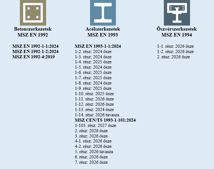 Új szakaszba ért a második generációs Eurocode-szabványok bevezetési programja, amikor az MSZT 2024. május 1-jén megjelentetett 20 új Eurocode-szabványt nemzeti szabványként, köztük a tervezési alapokat ismertető MSZ EN 1990-et és a betonszerkezetek tervezésének előírásait tartalmazó MSZ EN 1992 összes részét.