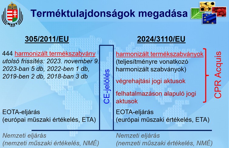A 275/2013. (VII. 16.) kormányrendelet korszerűsítése során figyelembe kell venni a magyar építészetről szóló 2023. évi C. törvény (Méptv.) előírásait is, valamint a már kialakult hazai szabályozási eszközöket, például a Nemzeti Műszaki Értékelések (NMÉ) rendszerét. Az NMÉ-kre vonatkozó szabályozás korszerűsítése kiemelt szerepet kap a 275/2013. (VII. 16.) kormányrendelet módosítása során, ennek egyik lehetséges iránya, hogy – hasonlóképpen az ETA-khoz – az NMÉ-k érvényességére is vonatkozzon időbeli korlátozás. További fontos terület még a 2024/3110/EU szerinti nemzeti információs rendszer kialakításához kötődő feladatok elvégzése. Ehhez kapcsolódóan fontos információ, hogy a nemzeti információs rendszer a konferenciát követően indult el, és a következő weboldalon érhető el: https://epitesitermeksegito.hu/.