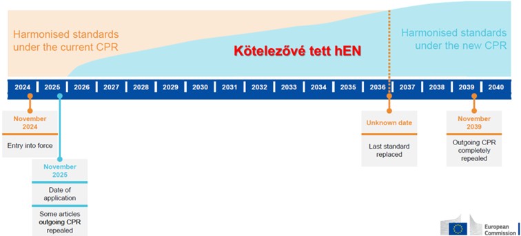 Fontos, hogy mind az új 3+. AVS-rendszer, mind az új DoPC azt követően releváns, hogy megjelenik egy harmonizált szabvány vagy jogi aktus, és az meghivatkozza az új AVS-rendszereket a termékcsoportra vonatkozóan. A harmonizálás időpontját követően egy évig önkéntesen alkalmazható, annak letelte után viszont már kötelező. Addig a már meglévő AVCP-rendszerek alapján teljesítménynyilatkozatot kell kiadni, és környezetvédelmi terméknyilatkozatban (EPD) közzé lehet tenni az alapvető környezetvédelmi tényezőket. A 305/2011/EU erre vonatkozó cikkei 2040. január 8-ig érvényesek, mely figyelembe veszi a harmonizált előírások kialakításához szükséges időt.