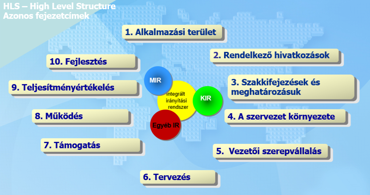 Az elmúlt években nagymértékben elterjedt, hogy a szervezetek integrált irányítási rendszereket működtetnek. Az előnyök mellett a korábbi kiadású irányítási rendszerszabványok eltérő felépítése nehézséget jelentett és nagymértékben megnehezítette a hatékony működtetést. A felmerült problémák kezelését az ISO-direktíva 1. rész SL melléklete – a HLS-struktúra (High Level Structure) kialakítása – oldotta meg. Ez biztosítja, hogy az irányítási rendszerekre vonatkozó szabványok következetesek és logikailag összefüggőek legyenek.